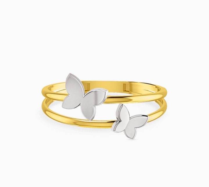 A gentle flight, beautifully balanced. This GOLDX split shank ring features two delicate butterflies resting lightly on twin golden bands—one ring, two paths, and endless meaning. A symbol of transformation and graceful connection, it celebrates the journey of becoming who you’re meant to be. Whether gifted or self-worn, it’s a poetic touch of elegance that stays with you through every change.