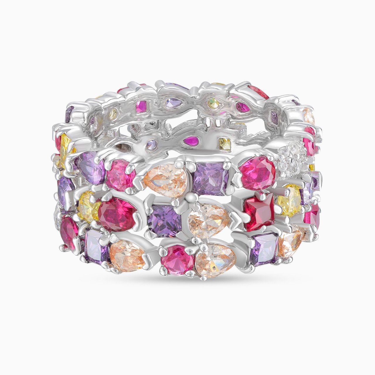 Make a bold statement with Waves, showcasing a stunning silver statement ring adorned with three rows of vibrant colored stones. Designed to captivate and inspire, this ring combines timeless elegance with a pop of color, making it a standout piece for any occasion.