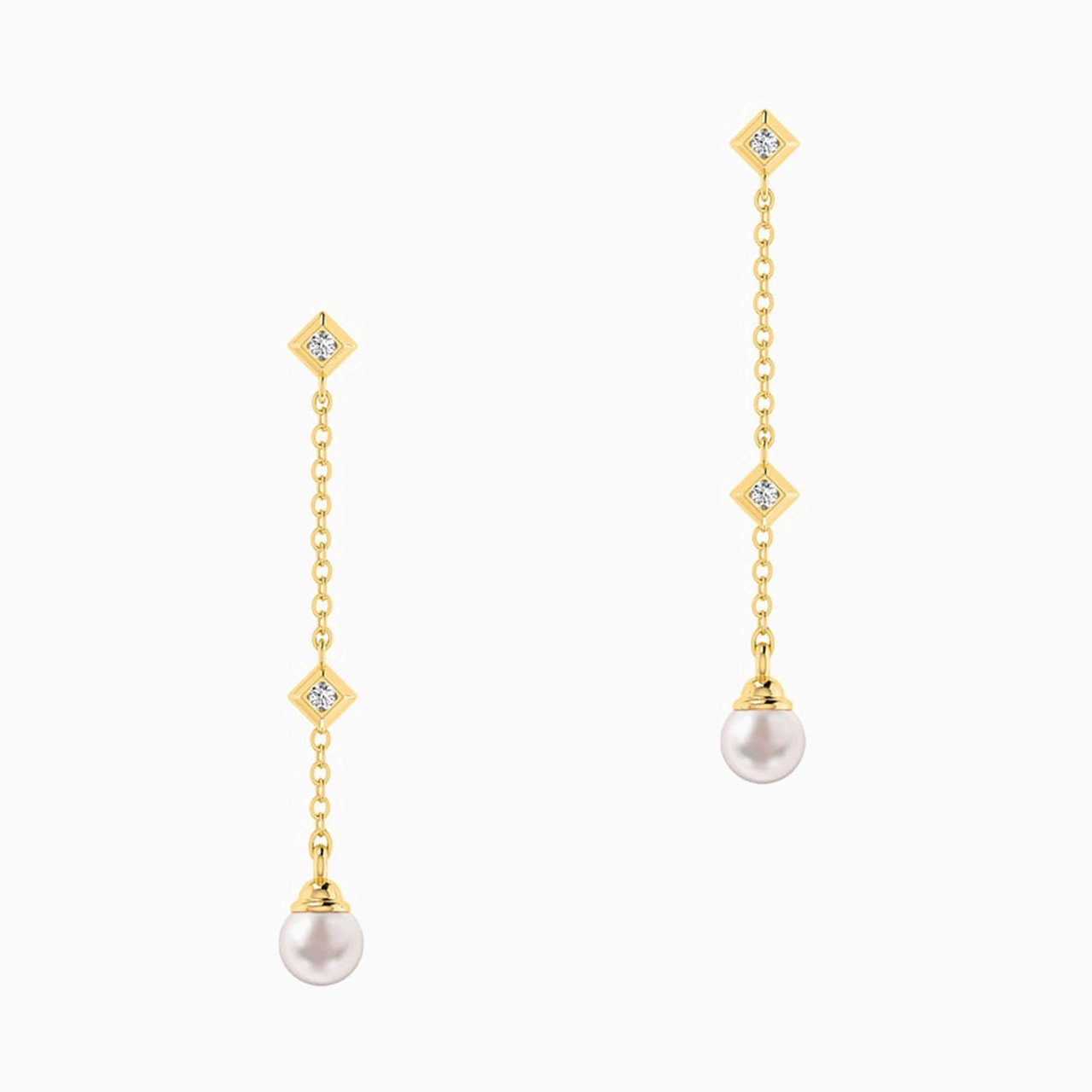 Add a subtle charm to your everyday wardrobe with these drop earrings from L’azurde Instyle. We love the petite stones that line up on the yellow gold chain and the milky white pearl drop. Wear your pair over a flowy dress to give it a feminine touch.